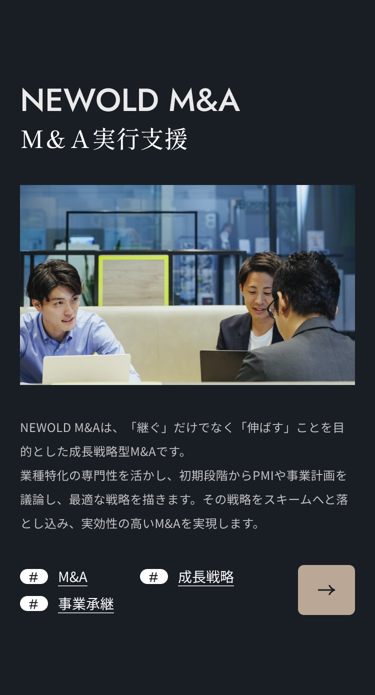 「どこに向かい、だれと組むか。」 その選択に真摯に向き合い、次世代につながる成長を支援していきます。