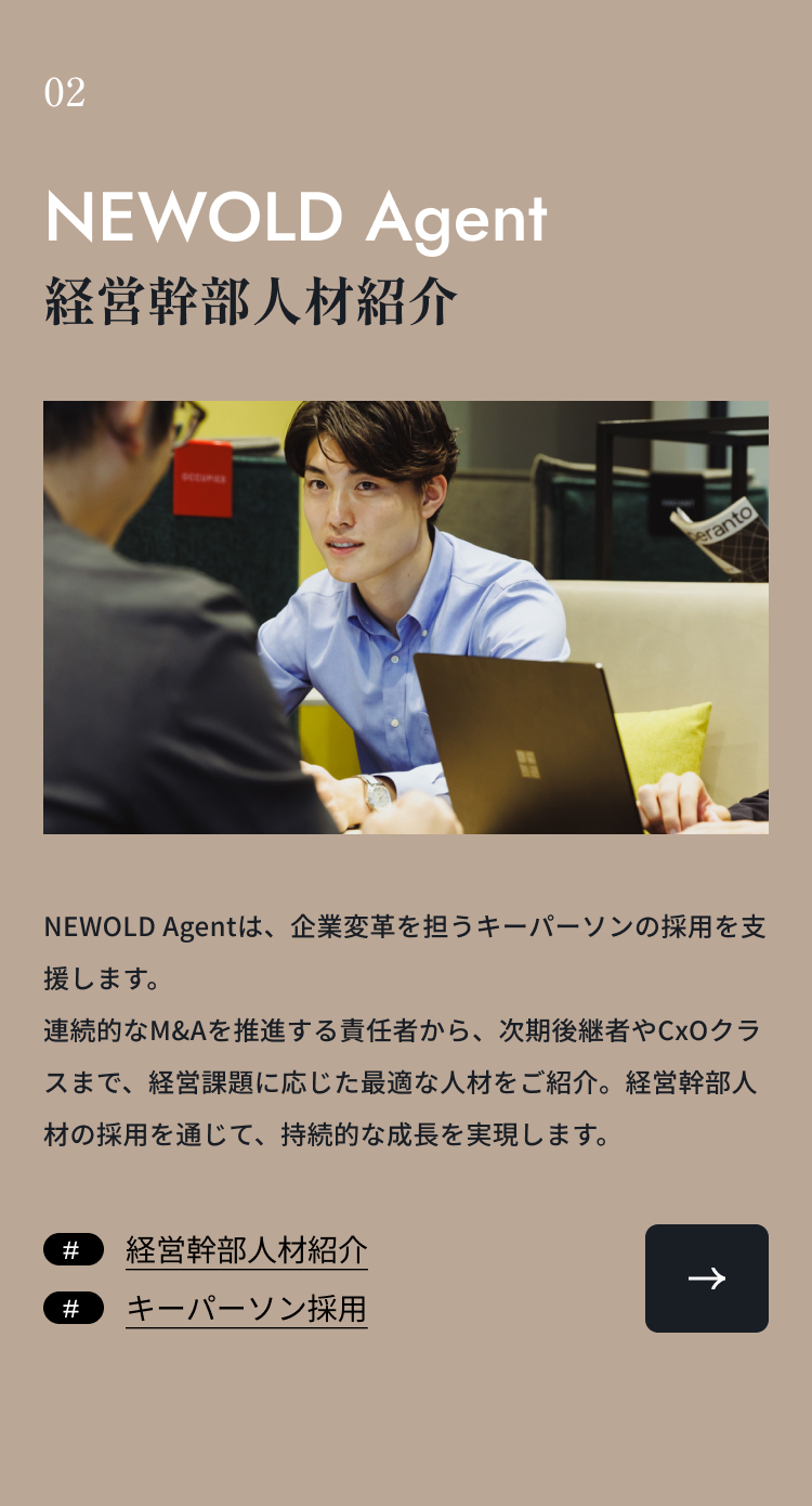 私たちは、M&A実行支援・経営幹部人材の紹介・エキスパート活用ソリューション事業を通じて、企業・人・地域の成長を実現するサービスを提供しています。