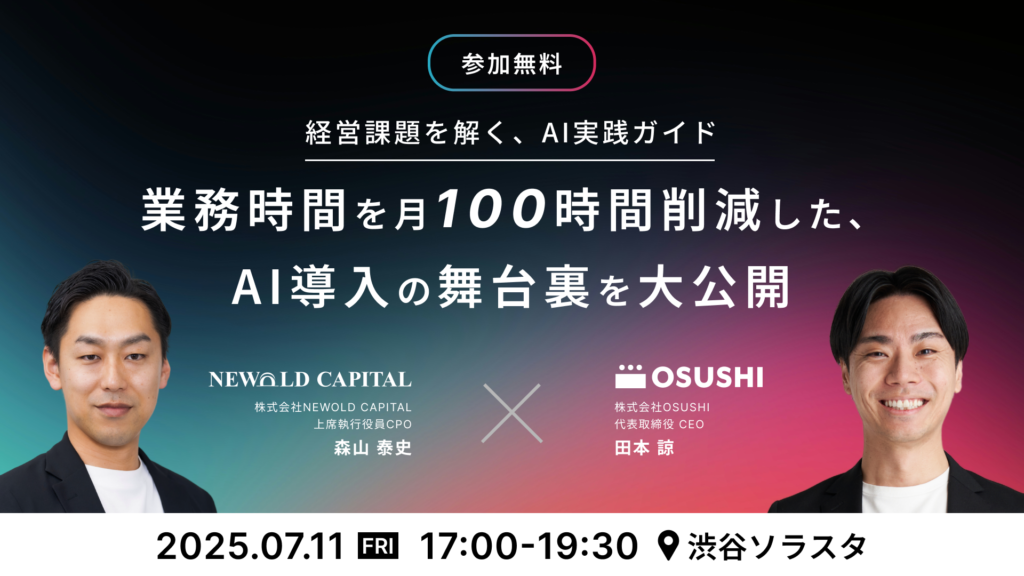 M&A・経営人材紹介を中心に、中小企業の成長戦略支援をするNEWOLD CAPITALが共催し、