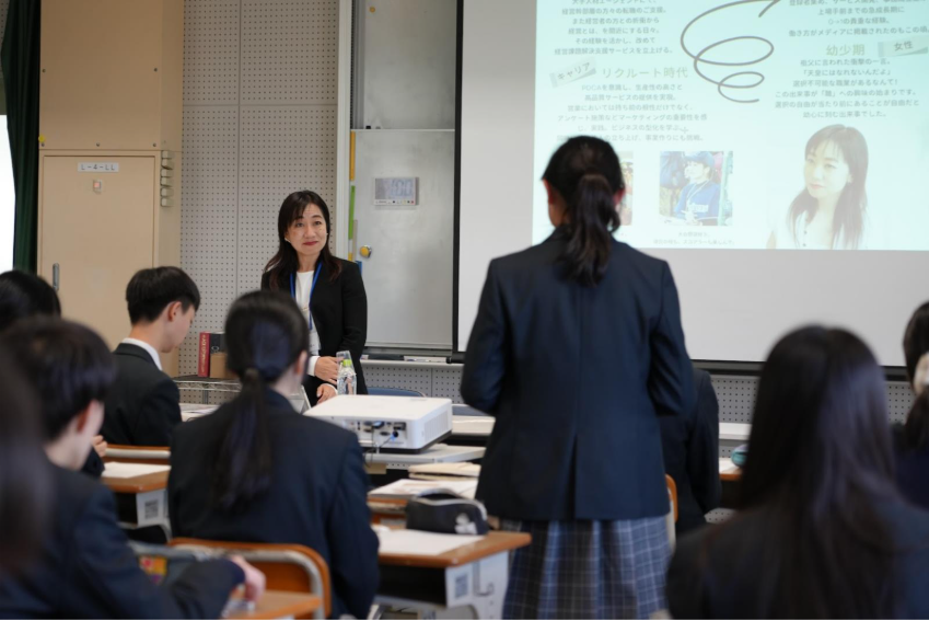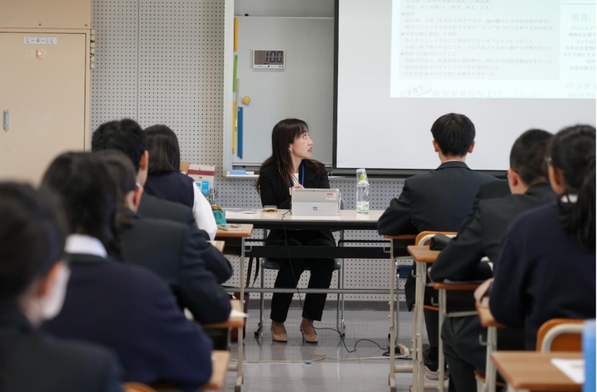 令和7年11月12日、東京都立桜修館中等教育学校で開催された「學(まなび)フォーラム」において、当社執行役員の許田が講師として登壇いたしました。本フォーラムはキャリア教育の一環として実施されており、「自分の『好き』のその先に ~可能性の扉を開く~」というテーマのもと、許田が自身のキャリアや体験談、仕事への想いなどを交えながら熱意を込めて講演を行いました。